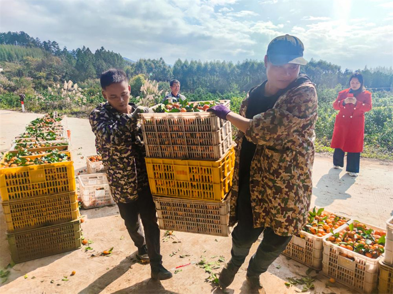 住有所居、居有所美、居有所安,说的正是金秀瑶族自治县桐木镇幸福里小区的居民。该小区的262户居民都是来自大瑶山深处的搬迁户,如今不仅全员脱贫,还走上了致富路。 “小心些,别让果子掉出来。”1月26日,记者在桐木镇大龙村看到,“金牌剪果队”队长赖发官正带领几名队员,将一箱箱黄澄澄的沙糖桔搬上货车。 据赖发官介绍,2018年他从金秀三角乡搬入幸福里小区。当时,许多年轻人为照顾家里的老人和小孩,无法外出务工,收入成了问题。“金秀的群众以务农为主,桐木镇及周边乡镇共种植沙糖桔20多万亩,每到农忙时节,需要大量人手帮工。”嗅到商机后,赖发官主动牵头,带动年轻人组建“剪果队”,以日结的方式结算报酬,最高时一天收入达500元。 “剪果队”建立后,当地政府出资为队员们购买拖拉机、桶、剪刀等劳动工具,同时多渠道宣传,扩大知名度。久而久之,“剪果队”不仅承包了金秀的果树养护,还把业务拓展到周边县城及荔浦市等地,带动搬迁户致富。如今,“剪果队”已由开始的几十人发展到近两百人。 平日里,除了果树养护、摘果等,“剪果队”还承包搬运装卸、砍树、割草等工作。每当接到活,赖发官便在小区微信群里发通知,想参加的居民均可报名。“前两年在广东打工,成家有小孩后决定回乡务工,赚得不比外面少。”搬迁户韦煜说。 “以前一直梦想着能有一辆自己的车,现在终于实现了。”赖发官说。除了劳务帮工,他还报名参加幸福里创业就业服务中心开设的培训课程,学习种植技术。近年来,他共种植10亩沙糖桔,钱包一年比一年鼓。在富起来的同时,他不忘为其他脱贫户当“红娘”,积极联系外地果商到金秀收果,为受疫情影响滞销的沙糖桔打开销路。 现在,赖发官已成为金秀的脱贫先进户和致富能手,踌躇满志的他把学到的种果技术毫无保留地传授给大家,越来越多的搬迁户在他的帮助下踏上创业之路。