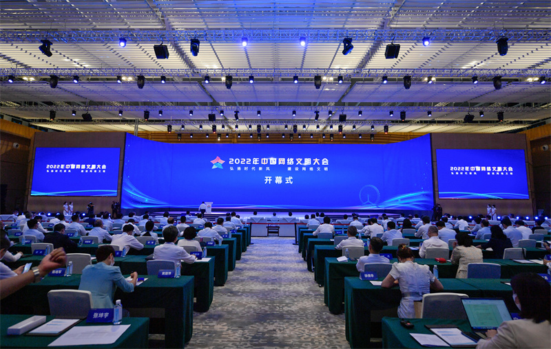 |       8月28日在国家会展中心(天津)拍摄的2022年中国网络文明大会开幕式现场。