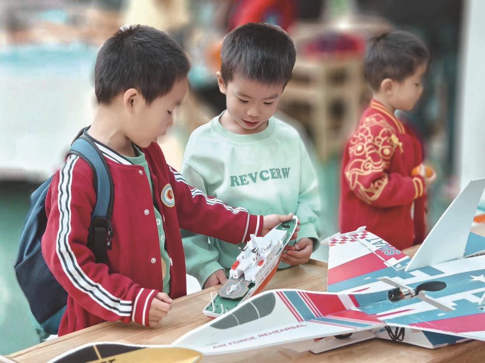 近日,兴宾区第一幼儿园举行第一届科技体育节,有小班段翻滚吧星球、中班段宇宙飞船大作战、大班段太空漫步等亲子运动项目。此次活动以趣味科技形式,激发幼儿探索热情,让科技活力满溢校园。图为孩子们近距离感受科技乐趣。(姚 慧 摄)