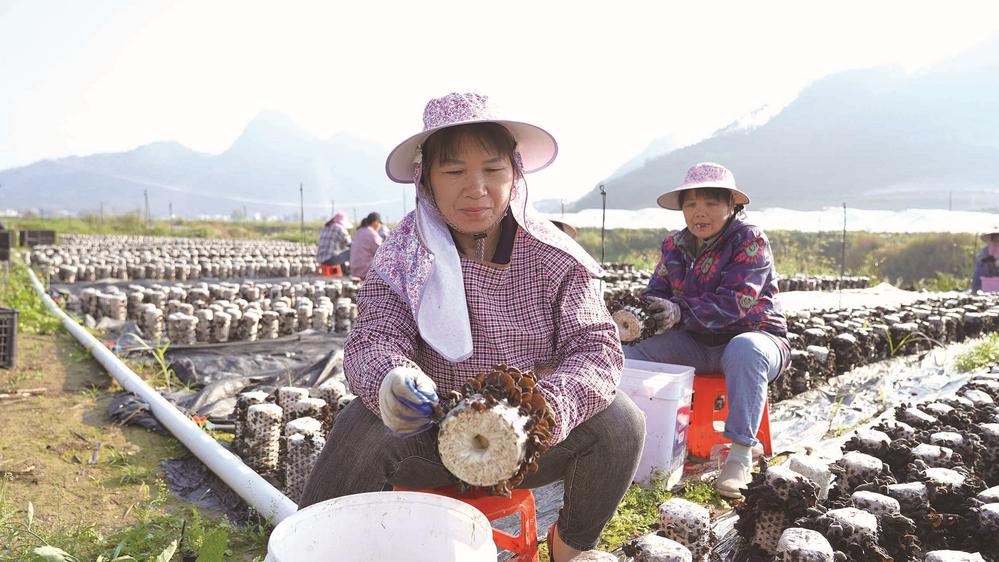 工人正在采摘木耳。 仲春时节,走进忻城县城关镇尚宁村蔬菜种植基地,黑木耳长势喜人,辣椒挂满枝头,韭菜苔香气扑鼻,工人们穿梭其间忙碌采摘,一派丰收景象。 3月12日上午7时,尚宁村黑木耳基地已是一片繁忙。20多名工人正熟练地采摘黑木耳,其中就有尚宁村尚宁屯村民樊秋梅。她家距离基地不到500米,每天送完孩子上学就来上班,下午还能准时接孩子放学。“去年11月就来这里务工了,摆菌棒、采木耳,一直干到现在。”樊秋梅一边采摘一边告诉笔者,相比之前在工业园区上班,现在离家更近,既能挣钱又能照顾孩子。 不远处的辣椒种植大棚里,工人们正提着袋子采摘黄甜椒。基地负责人郑勇军一边查看辣椒长势,一边安排装车事宜。“客户提前一天预订,我们第二天采摘发货,每天外销5吨以上。”据介绍,基地每天用工50人以上,高峰期达70~80人,工钱当天结算,工人们干劲十足。 在韭菜苔打包间,几位工人正在分拣整理。泮水村村民刘秀勤去年8月到基地务工,她告诉笔者:“这里工资计件支付,有活儿我们就来,每天能挣80元到100元。” 2025年以来,在城关镇党委、政府的积极引导下,尚宁村锚定党建引领、科技赋能、联农带农方向,高标准打造集木耳、辣椒、韭菜苔等特色蔬菜种植于一体的农业现代化蔬菜基地,有效带动群众增收。 “基地优先吸纳脱贫户务工,目前已带动周边群众600多人次就业,真正实现了群众在‘家门口’就业的愿望。”尚宁村党总支部书记、村委会主任谭凤萍表示,村委及时对接企业,了解用工需求,鼓励群众到基地务工,既解决企业用工难题,又促进群众增收。 随着气温回升,基地各类蔬菜进入采摘黄金期,用工需求持续增加,群众就业更有保障,大家的“钱袋子”越来越鼓。 (莫玉秀 樊娇慧 文/图)