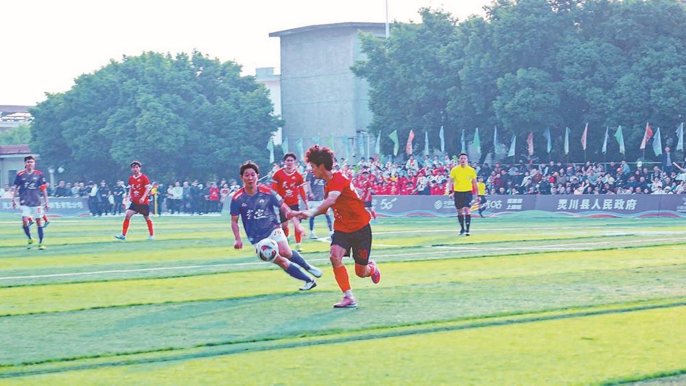 比赛现场,武宣县队与灵川县队展开激烈角逐。 来宾网-来宾日报桂林讯 1月17日15时30分,“国控杯”2025—2026年广西县级足球超级联赛桂北赛区迎来第二轮比赛,来宾市武宣县队与桂林市灵川县队的比赛在灵川县第一中学足球场打响。 上半场,武宣队迅速找到节奏打起防守反击,灵川队虽取得一次角球机会,但球在传中时直接飞出底线,错失进攻良机,双方以0:0结束上半场。下半场,武宣县队队员因高强度奔跑与频繁对抗导致体能下降,比赛节奏骤然被打乱,防守频频出现破绽。灵川县队抓住机会,一波波攻势不断施压,武宣县队球员疲于回防,靠拼抢勉强守住防线。90分钟常规比赛时间结束,双方比分依旧0:0,比赛进入点球大战。 “武宣队!挺住!”观众的呐喊声此起彼伏。点球对决中,武宣县队门将乔栋杰发挥出色,成功扑出灵川县队两个点球。最终,武宣县队以3:1锁定胜局,客场凯旋。 “点球时心里很紧张,看到还在咬牙坚持的队友们,我就只想守住这道门,不辜负大家的努力。”乔栋杰说。 当天,两队球员还交换本土特产,武宣县队送上红糟酸、国画石,灵川县队回赠青狮潭生态鱼、桂林米粉与桂花蜜酱,双方友好握手,以礼传情。