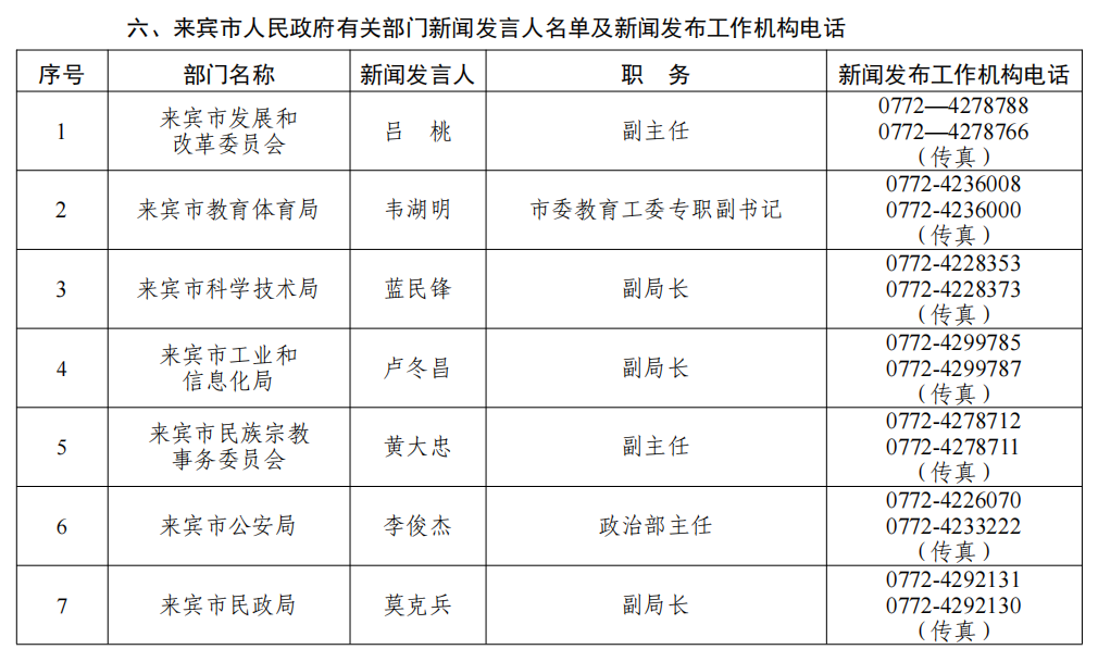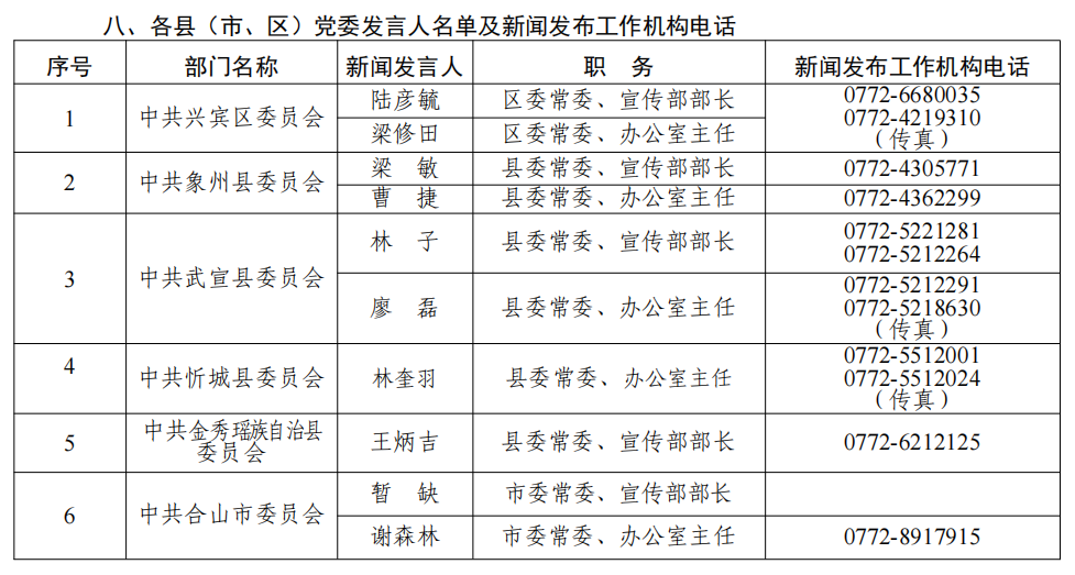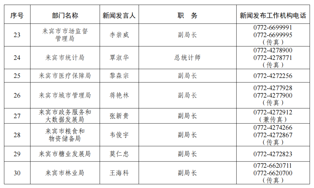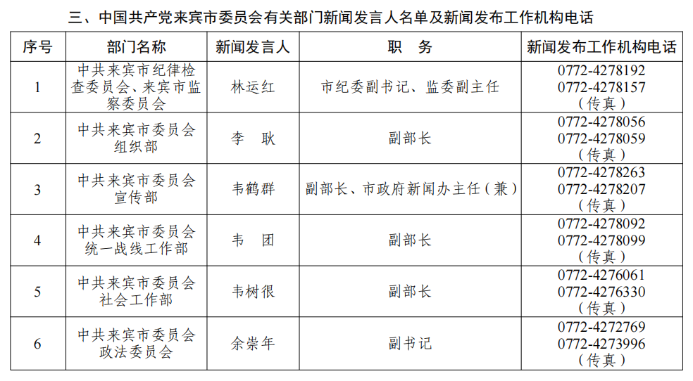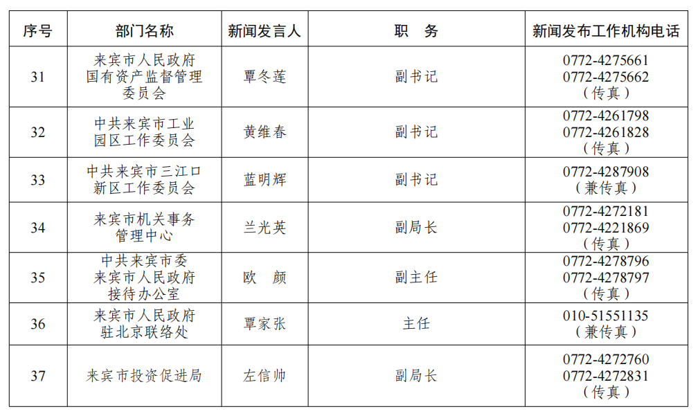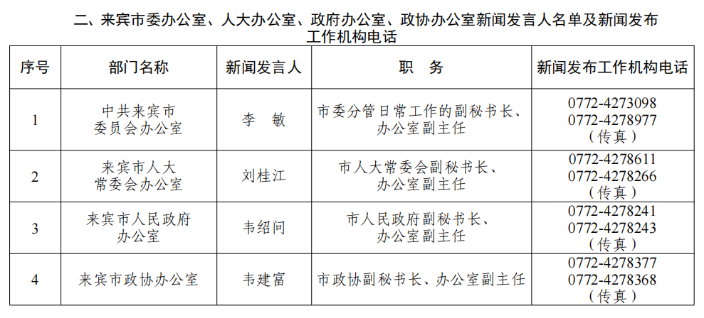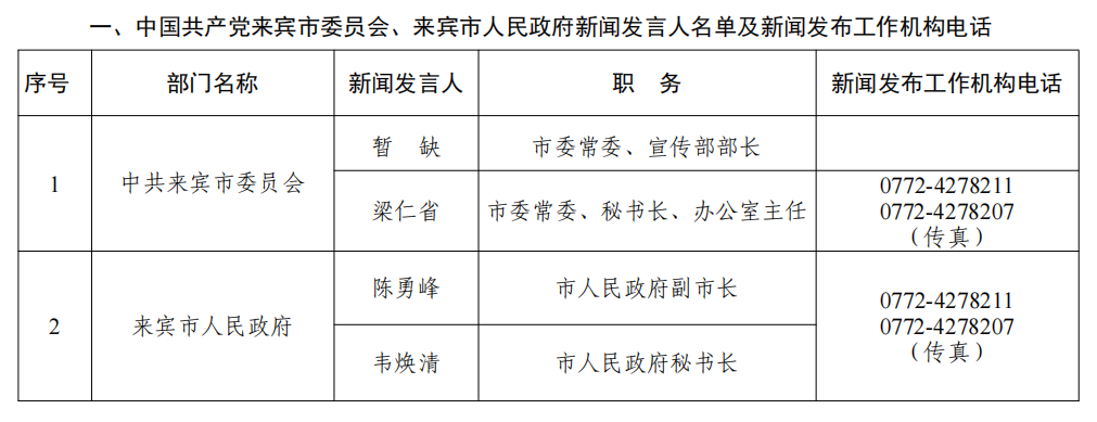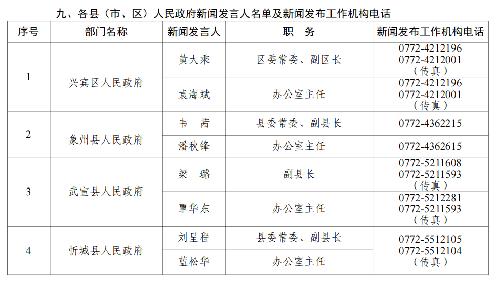 来宾市2026年新闻发言人名录