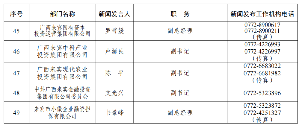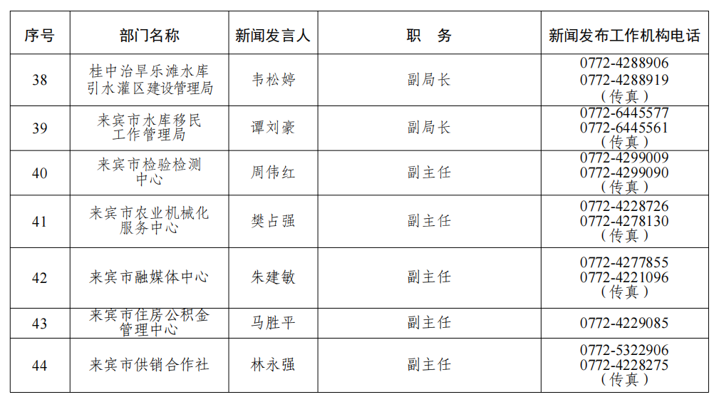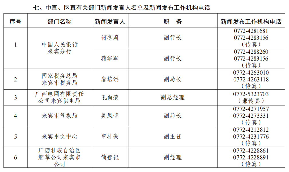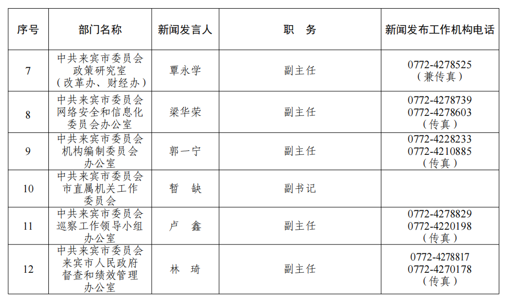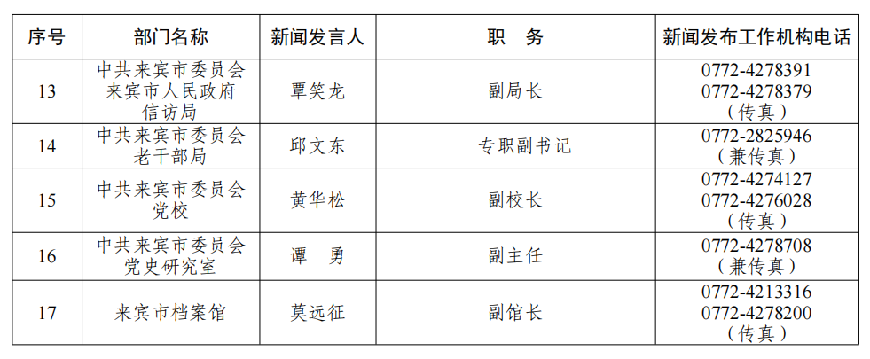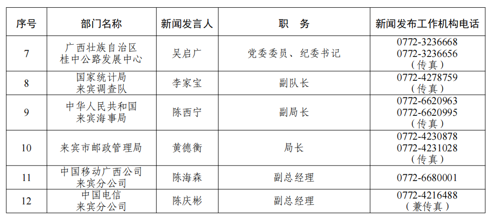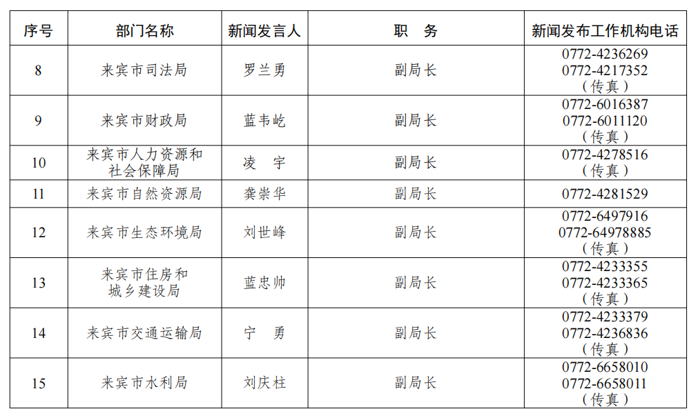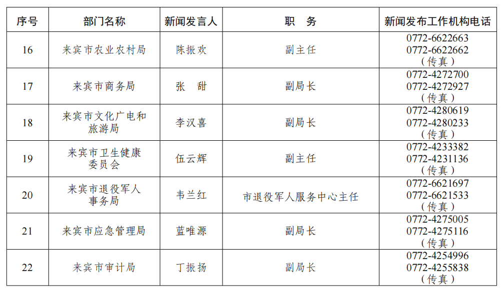 来宾市2026年新闻发言人名录